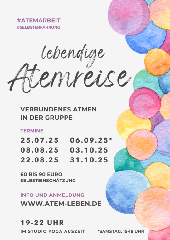 Anmelden kannst du dich direkt im Studio unter yogaauszeit108@gmail.com